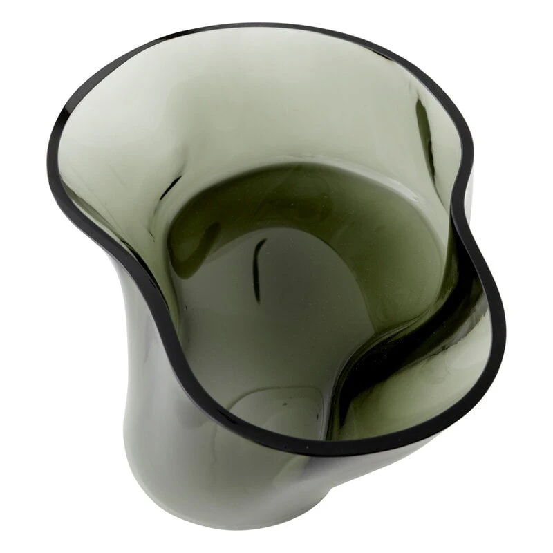 Die Aer-Vase von Menu zeichnet sich durch ein zart geriffeltes Design aus, das von den wirbelnden Bewegungen von Rauch oder Nebel in der Luft inspiriert ist. Die von Gabriel Tan kreierte, mundgeblasene Glasvase fängt diese hypnotischen Wirbel ein und verleiht dem Behälter ein organisches, einzigartiges Aussehen. Wenn natürliches Licht durch das rauchgraue Glas fällt, kommt die ätherische Natur der Vase zum Vorschein – die sanften Wellen und Riffel laden Licht und Schatten ein, auf bezaubernde Weise um das Gefäß zu tanzen. Ob mit Blumen oder Zweigen gefüllt oder leer als eigenständiges Dekorationsobjekt – die Vase Aer ist stets ein auffälliger Blickfang.