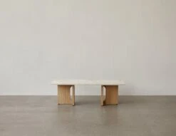 Der Androgyne-Loungetisch von Menu ist eine reizvolle Kombination aus kontrastierenden Merkmalen. Der Tisch ist aus Eichenfurnier und dem einzigartigen Kunis-Breccia-Stein gefertigt und spielt mit femininen und maskulinen Elementen, mit weichen Schnitten und scharfen Kanten sowie mit einfachen und kühnen Silhouetten. Der von Danielle Siggerud entworfene Androgyne-Tisch ist mit seiner harmonischen, stabilen Optik ein Mittelpunkt im Raum, der gleichermaßen zum Benutzen wie zum Anschauen einlädt. Der elegante Loungetisch ist der perfekte Begleiter für eine Couch, dient aber genauso gut als wunderschöner Beistelltisch.
