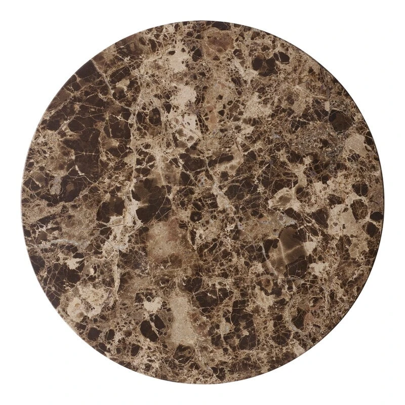 Die Tischplatte aus braunem Emperador-Marmor verleiht dem Androgyne-Beistelltisch von Menu ein edles Aussehen. Der kräftige und lebendige Marmor bildet einen faszinierenden Kontrast zu dem schlanken Design und dem modernen Aussehen von Androgyne. Die Androgyne-Kollektion von Menu wurde von Danielle Siggerud entworfen.