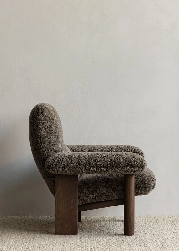 Der Brasilia-Loungesessel von Menu besticht durch sein organisches Aussehen und seine weichen Linien. Der von Anderssen & Voll designte Brasilia-Loungesessel besteht aus einem Gestell aus Massivholz, das in traditioneller Tischlerarbeit hergestellt wurde, sowie einer gepolsterten Sitzfläche und gepolsterten Armlehnen. Die Kombination aus runden Vorderbeinen und eckigen Hinterbeinen verleiht dem Sessel eine schöne geometrische Note.Â