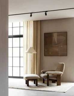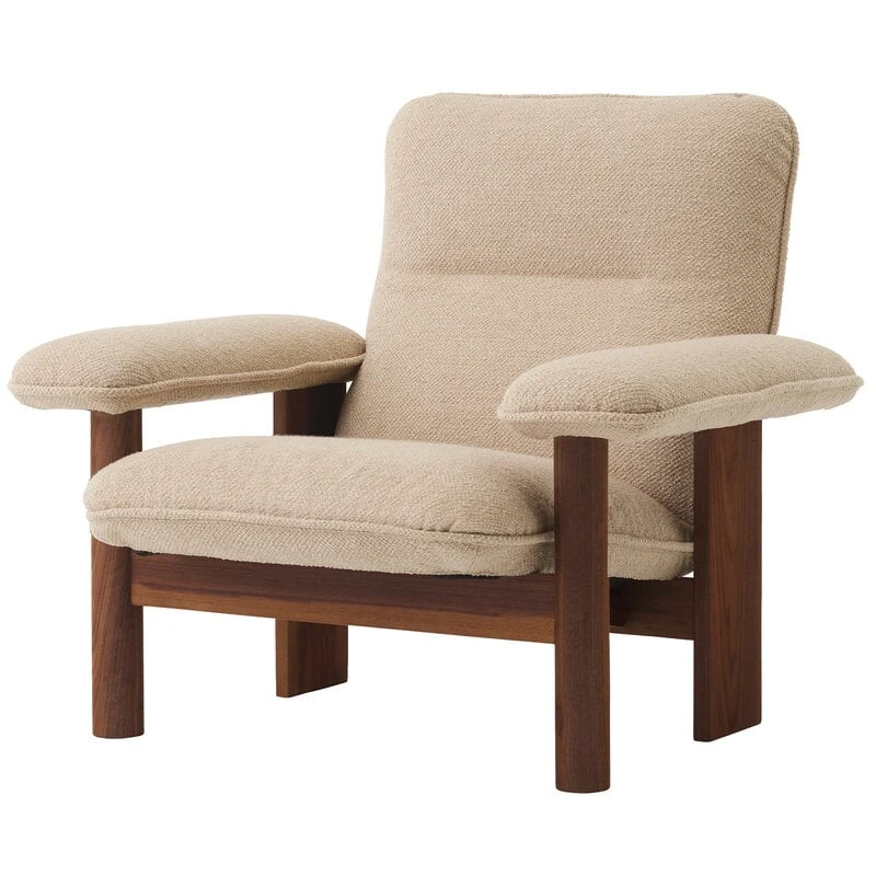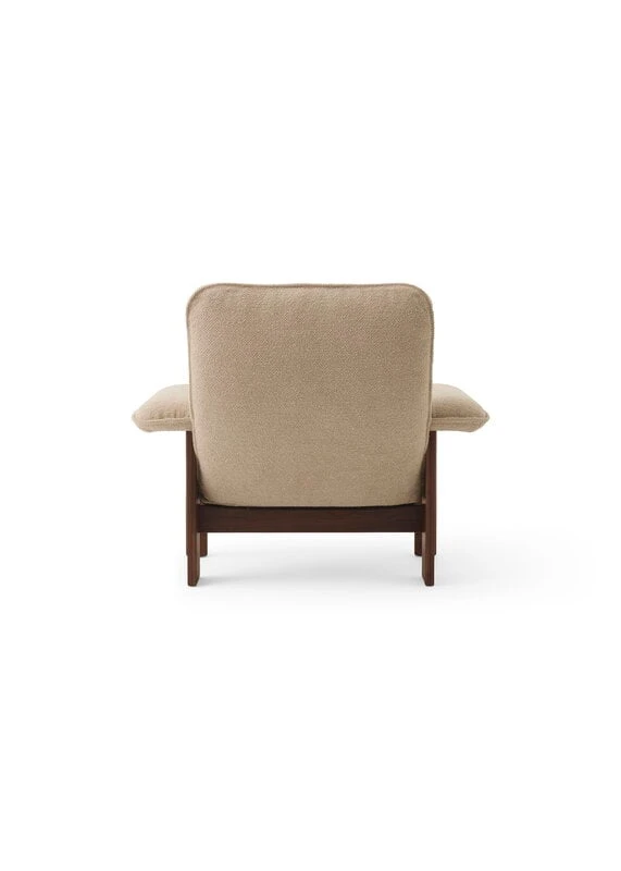 Der Brasilia-Loungesessel von Menu besticht durch sein organisches Aussehen und seine weichen Linien. Der von Anderssen & Voll designte Brasilia-Loungesessel besteht aus einem Gestell aus Massivholz, das in traditioneller Tischlerarbeit hergestellt wurde, sowie einer gepolsterten Sitzfläche und gepolsterten Armlehnen. Die Kombination aus runden Vorderbeinen und eckigen Hinterbeinen verleiht dem Sessel eine schöne geometrische Note.