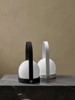 Die Carrie-Tischleuchte von MENU verleiht Ihrem Zuhause eine warme und gemütliche Atmosphäre – oder wie es in Dänemark heißt: „Hygge“! Die von Norm Architects entworfene Leuchte umfasst einen runden Sockel aus Plastik, eine weiße Kuppel aus Opalglas und einen schlanken, gebogenen Griff, der es Ihnen erlaubt, die Lampe überallhin mitzunehmen. Die dimmbare Lampe ist wiederaufladbar und kabellos, sodass sie sich problemlos auf dem Nachtschrank oder der Fensterbank platzieren lässt – oder als tragbare Lichtquelle für Sommerhäuser, zu Picknicks oder für abendliche Strandspaziergänge mitgenommen werden kann. Dank der IP44-Zertifizierung kann die Leuchte auch im Freien auf dem Balkon, der Terrasse oder im Garten eingesetzt werden.