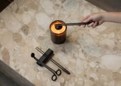 Mit dem eleganten und unkomplizierten Clip-Kerzenpflegeset von MENU können Sie die Lebensdauer Ihrer Kerzen verlängern. Wussten Sie, dass Sie den Docht vor dem Anzünden immer kürzen sollten? Und dass Sie Flammen am besten mit einem Kerzenlöscher ausmachen?