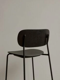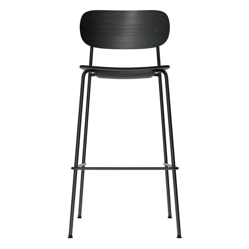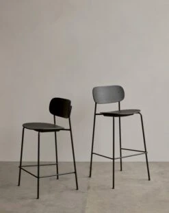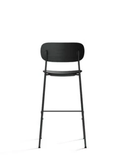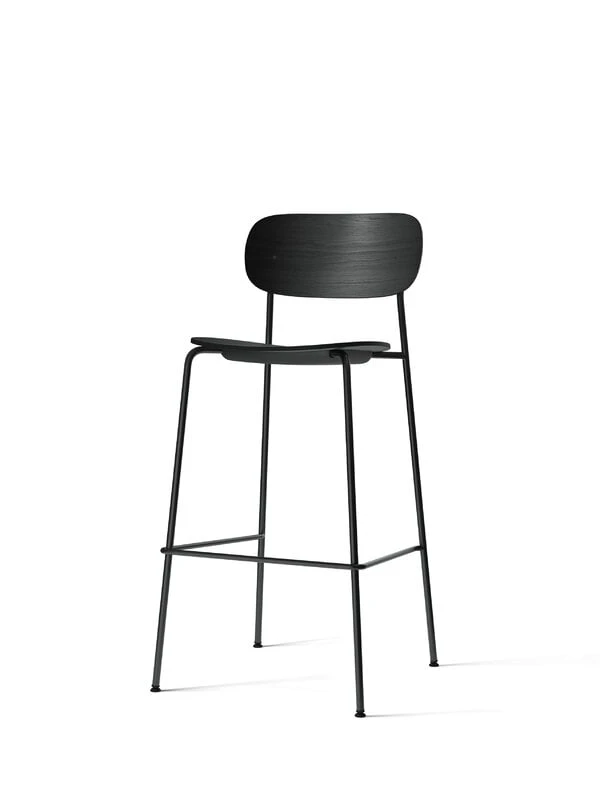 Der Co-Barhocker von Menu zeichnet sich durch einen ausgewogenen Kontrast zwischen einem schlanken Stahlrohrgestell und einer sanft geschwungenen Sitzfläche aus Holz aus. Die leicht geneigte Rückenlehne sorgt für optimalen Sitzkomfort und Halt.