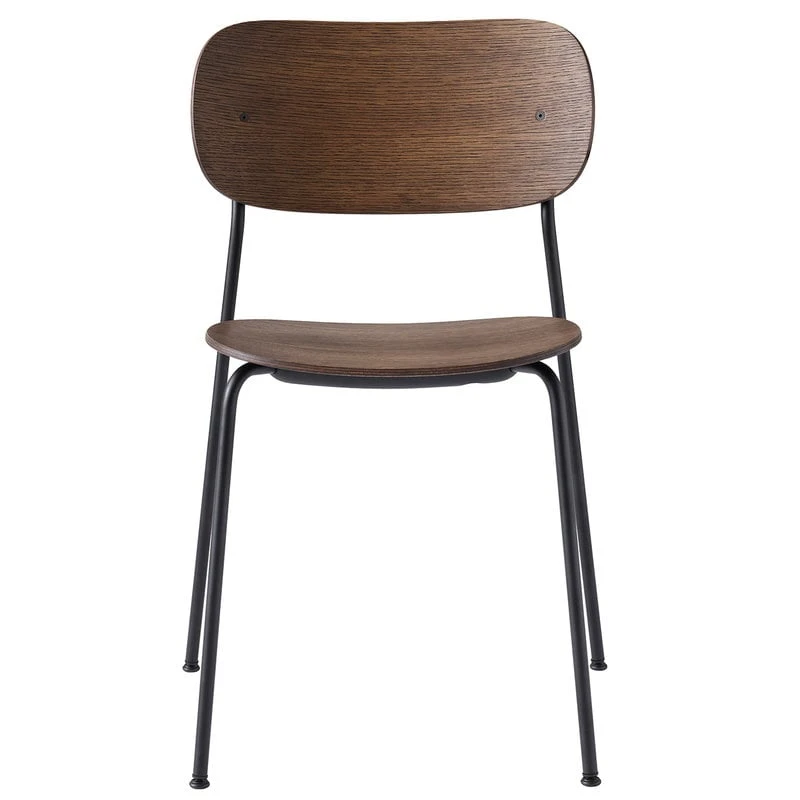 Menus Co Chair zeichnet sich durch einen ausgewogenen Kontrast zwischen einem schlanken Stahlrohrgestell und einer sanft geschwungenen Holzsitzfläche aus. Die leicht geneigte Rückenlehne sorgt für optimalen Sitzkomfort und Halt.