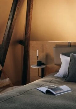 Das Corbel-Regal von Menu ist ein moderner wandmontierter Blickfang, der weißen Marmor, dunkel gebeizte Eiche und beschichteten Stahl kombiniert. Der Entwurf des Designbüros Kroeyer-Saetter-Lassen orientiert sich gestalterisch an den tragenden Kragsteinen der Gebäude. Das minimalistische Regal eignet sich als Nachttisch oder Beistelltisch ebenso wie als Plattform für Einrichtungsschätze und passt sich jeder Umgebung wunderbar an.