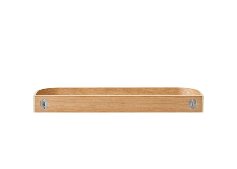 Das Wandregal Epoch von Menu besticht durch sein elegantes Design, das sowohl die Form als auch die Funktionalität betont. Beide Seiten des von Nina Bruun entworfenen Wandregals können verwendet werden: Die eine Seite eignet sich perfekt als Ausstellungsregal oder Bilderleiste in einem Schlafzimmer oder Wohnzimmer, während die andere, tiefere Seite Stauraum für alle Arten von Gegenständen bietet und dem Raum ein Gefühl von Ruhe und Gelassenheit verleiht. Zu diesem Zweck ist das Epoch-Regal die perfekte Ergänzung für einen Eingangsbereich, der zu klein für einen Beistell- oder Konsolentisch ist, aber dennoch einen Platz für Schlüssel, Sonnenbrille und Kopfhörer benötigt. Das Holzregal ist aus eichenfurniertem Sperrholz gefertigt, wobei die natürliche Wärme des Holzes und die geschwungene Formensprache den ruhigen Eindruck des Regals nochmals verstärken.