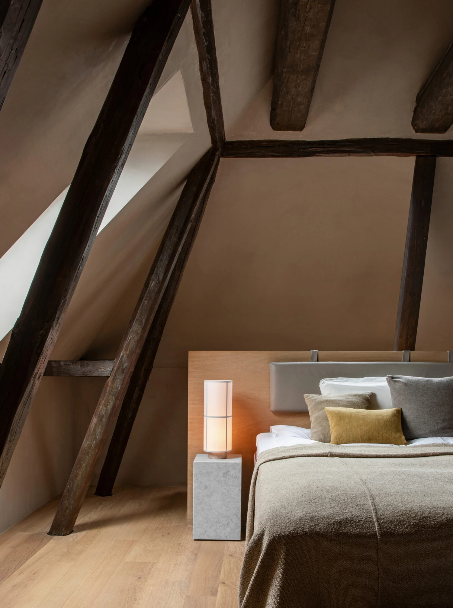Bringen Sie mit der Hashira Tischleuchte Licht in Ihr Zuhause! Diese zylinderförmige Lampe der dänischen Marke Menu zeichnet sich besonders durch Ihren handgefertigten Schirm aus tollem Leinenstoff aus. Aufgrund des halbtransparenten Materials des Schirms wird die grafische Struktur der Lampe im Inneren während des Leuchtens effektvoll betont. Um die optimale Wirkung zu erzielen, platzieren Sie sie im Flur, auf dem Sideboard im Wohnzimmer oder auf Ihrem Schreibtisch.