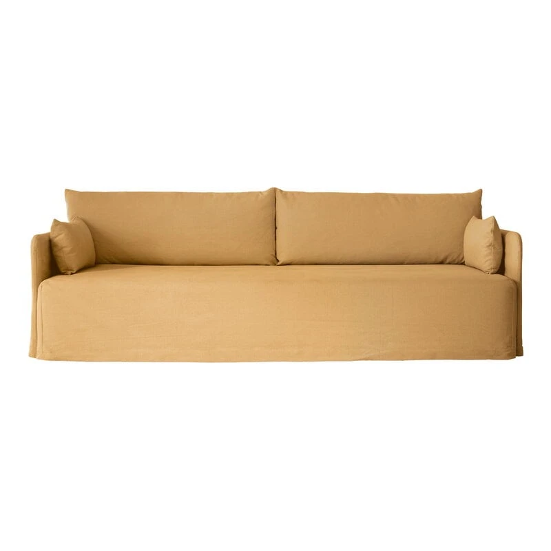 Das Offset-3-Sitzer-Sofa wird mit einem abnehmbaren und waschbaren losen Bezug geliefert. Sie können die Lebensdauer des Sofas verlängern, indem Sie einen verschlissenen Bezug durch einen neuen ersetzen – und mit einem zusätzlichen Bezug können Sie das Aussehen des Sofas verändern, wann immer Ihnen danach ist. Der Bezugsstoff besteht aus einem schönen und strapazierfähigen Baumwoll-Leinen-Gemisch, die weichen Kissen sind mit Federn und Schaumstoffgranulat gefüllt.