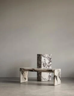 Die von Norm Architects entworfene Plinth-Kollektion zelebriert die natürliche, kunstvolle Schönheit von Marmor. Jedes Stück ist ein Individuum, das durch die Patina im Laufe der Jahre noch einzigartiger wird.