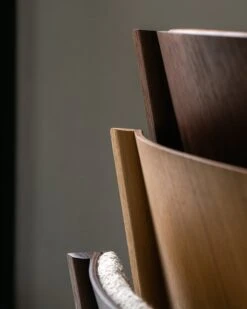 Die Studien von Møllenbach und Rasmussen zu Formpresstechniken bilden die Grundlage für das Design. Der Ready-Stuhl besteht aus Buchenholz und Eichenfurnier mit einer wunderschönen, natürlichen einzigartigen Oberfläche, die dem Design eine zusätzliche Portion Charakter und Wärme verleiht. Aufgrund seiner kompakten und dennoch bequemen Größe eignet sich Ready ideal als Esszimmerstuhl. Da er außerdem stapelbar ist und mit einem praktischen Verbindungsstück gruppiert aufgestellt werden kann, ist er auch für eine Vielzahl anderer Räumlichkeiten geeignet.