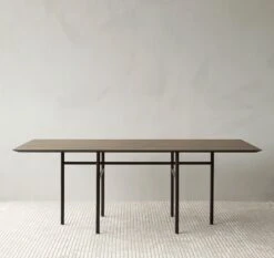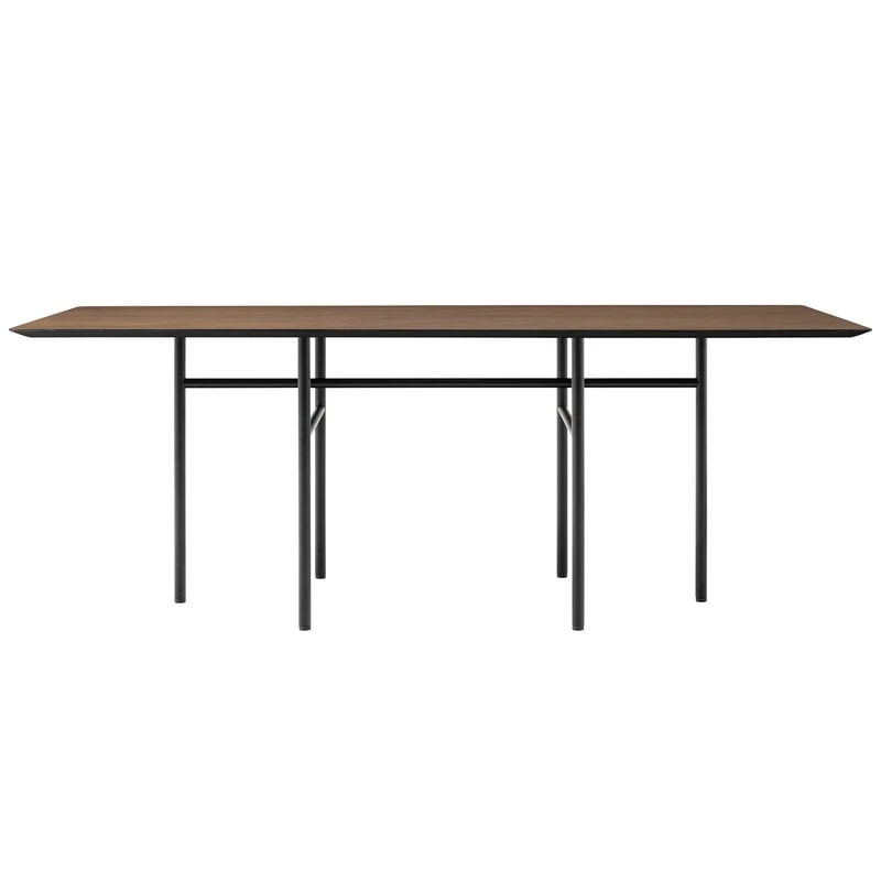 Der Snaregade-Tisch von MENU hat ein elegantes, grafisches Design, das durchaus ein zukünftiger Klassiker sein könnte. Er verfügt über eine schlichte Platte aus Eichenfurnier und filigrane Stahlbeine, die so positioniert wurden, dass sie ausreichend Beinfreiheit bieten. Der dunkel gebeizte Esstisch bietet bis zu acht Personen Platz – so sind Überraschungsgäste immer herzlich willkommen! Das Snaregade-Design macht sich auch ideal als stilvoller Arbeitstisch.