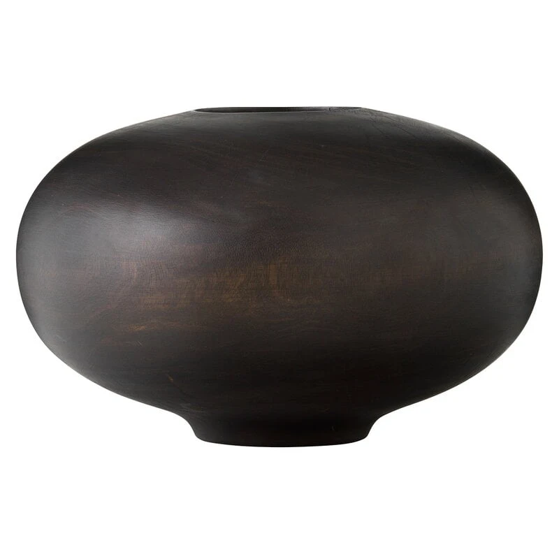 Die Surround-Vase von Menu besticht durch ihre einzigartige Farbe und symmetrische Form. Die runde Vase aus dunklem Holz eignet sich perfekt, um sowohl lange, minimalistische Zweige als auch farbenprächtige Trockenblumensträuße zu präsentieren, Sie können aber genauso gut Süßigkeiten in der Vase aufbewahren. Wir raten davon ab, die Vase mit Wasser zu füllen. Zur Ausstellung von frischen Blumen in der Surround-Vase platzieren Sie die Blumen am besten in einer kleineren Glasvase in die hölzerne Vase hinein.