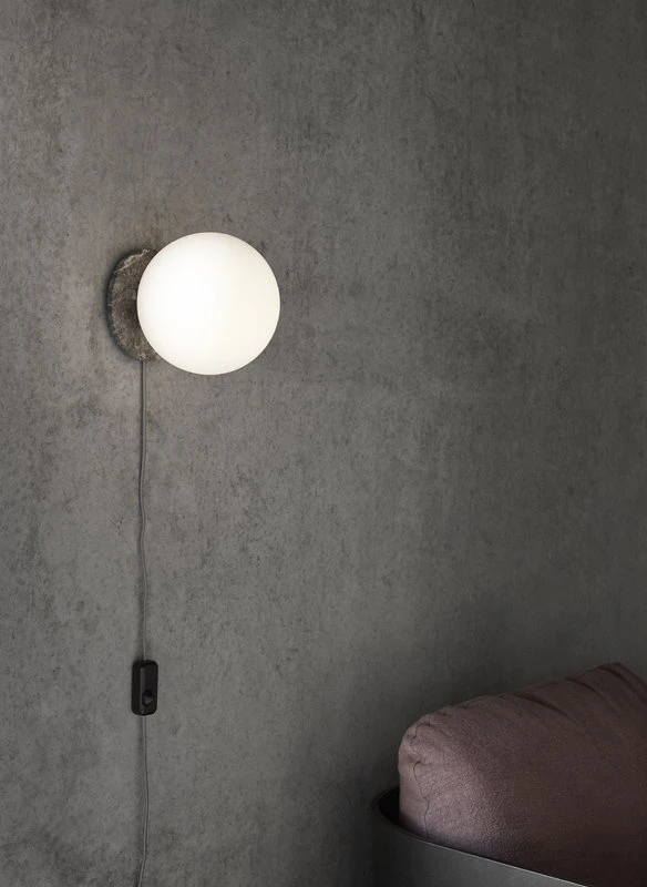 Die Tisch-/Wandleuchte TR Bulb von Menu ist eine vielseitige und schöne Kombination aus einem Sockel aus grauem Marmor und einer TR Bulb aus Opalglas.