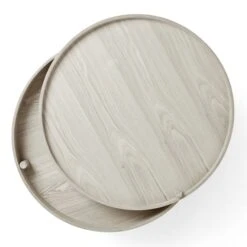 Mit dem Turning Table von Menu können Sie ganz einfach Ordnung im Wohnzimmer schaffen: Der Stauraum unter der Abdeckung des Tisches kann zum Beispiel für Zeitschriften, Bücher und Bastelarbeiten genutzt werden. Der Turning Table ist aus lackierter Eiche gefertigt und verfügt über eine elegante Metallstruktur unter der Tischplatte. Die „Turning Table“-Kollektion wurde von Theresa Rand entworfen.