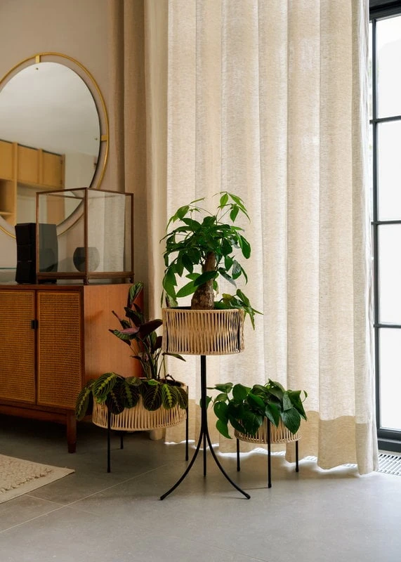 Das Umanoff-Pflanzgefäß von Menu besticht durch seinen schlichten schwarzen Stahl und handgeflochtenes Rattan. Das von Arthur Umanoff entworfene, erhöhte Pflanzgefäß bietet ein modernes Zuhause für Pflanzen für den Innen- und Außenbereich.