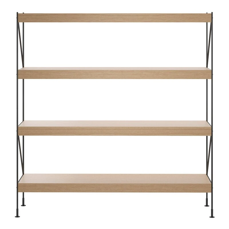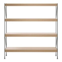 Das Aufbewahrungssystem H158 ist ein Regal mit vier Ebenen – das perfekte Bücherregal oder Ausstellungsregal für Ihre schönsten Habseligkeiten! Der Name H158 bezieht sich auf die Höhe des Regals: 158 cm. Das Regal kann mit einer Rückwand oder einem Zeitschriftenständer vervollständigt werden.