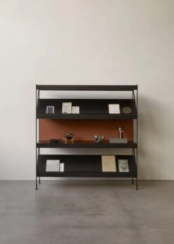 Das Aufbewahrungssystem H158 ist ein Regal mit vier Ebenen – das perfekte Bücherregal oder Ausstellungsregal für Ihre schönsten Habseligkeiten! Der Name H158 bezieht sich auf die Höhe des Regals: 158 cm. Das Regal kann mit einer Rückwand oder einem Zeitschriftenständer vervollständigt werden.